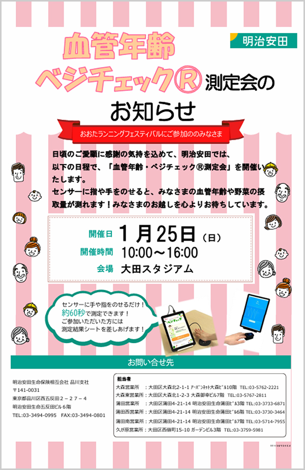 明治安田 品川支社のブースでは、『健康増進イベント』として、血管年齢とベジチェック®の測定会を開催します!